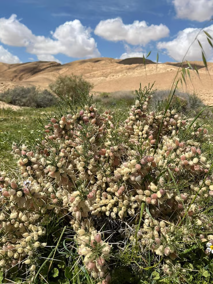 Доктор Дотан Ротем, руководитель отдела управления и мониторинга природных заповедников в «Управлении природы и парков», объясняет: «Экологическая система засушливой пустыни может удивлять. Когда она находится в своём обычном сухом состоянии, мы видим перед собой открытые пространства до самого горизонта. Но в годы, когда выпадает значительное количество дождей, как в этом году, разные районы пустыни окрашиваются множеством цветов, главным образом благодаря эфемерным видам растений. Ротем пустынный будет цвести каждый год даже при небольшом количестве дождей, потому что у него глубокая корневая система, достигающая глубоких слоёв между русловыми камнями, где долгое время сохраняется небольшое количество воды.