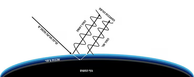 Разрушительная интерференция возникает, когда две волны приходят в противоположных фазах — пик против впадины. В этом случае положительная часть одной волны компенсируется отрицательной частью другой. На этом принципе основан механизм работы шумоподавляющих наушников. Когда радиоволна попадает на покрытие корпуса самолёта, часть излучения отражается от него. Другая часть проникает в покрытие, достигает поверхности самого корпуса, отражается от неё и снова проходит через слои покрытия, выходя наружу. Правильный выбор толщины покрытия в зависимости от длины волны позволяет добиться того, чтобы фаза, которую второй отражённый сигнал приобретает внутри покрытия, создавала разрушительную интерференцию с первым отражением и тем самым гасила отражённое излучение передатчика.